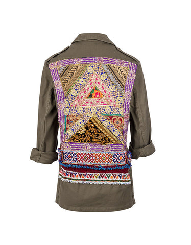 Vintage Embroidered Army Jacket in Army Green