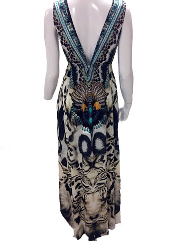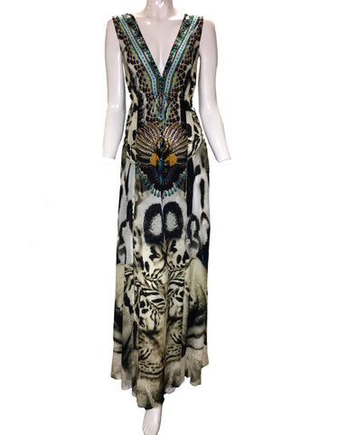 Shahida Parides White Tiger V-Neck Embellished Dress in Bright White